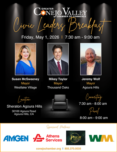 Join the Greater Conejo Valley Chamber of Commerce for the next event in the Spotlight Breakfast Series: Civic Leaders Mayoral Roundtable.